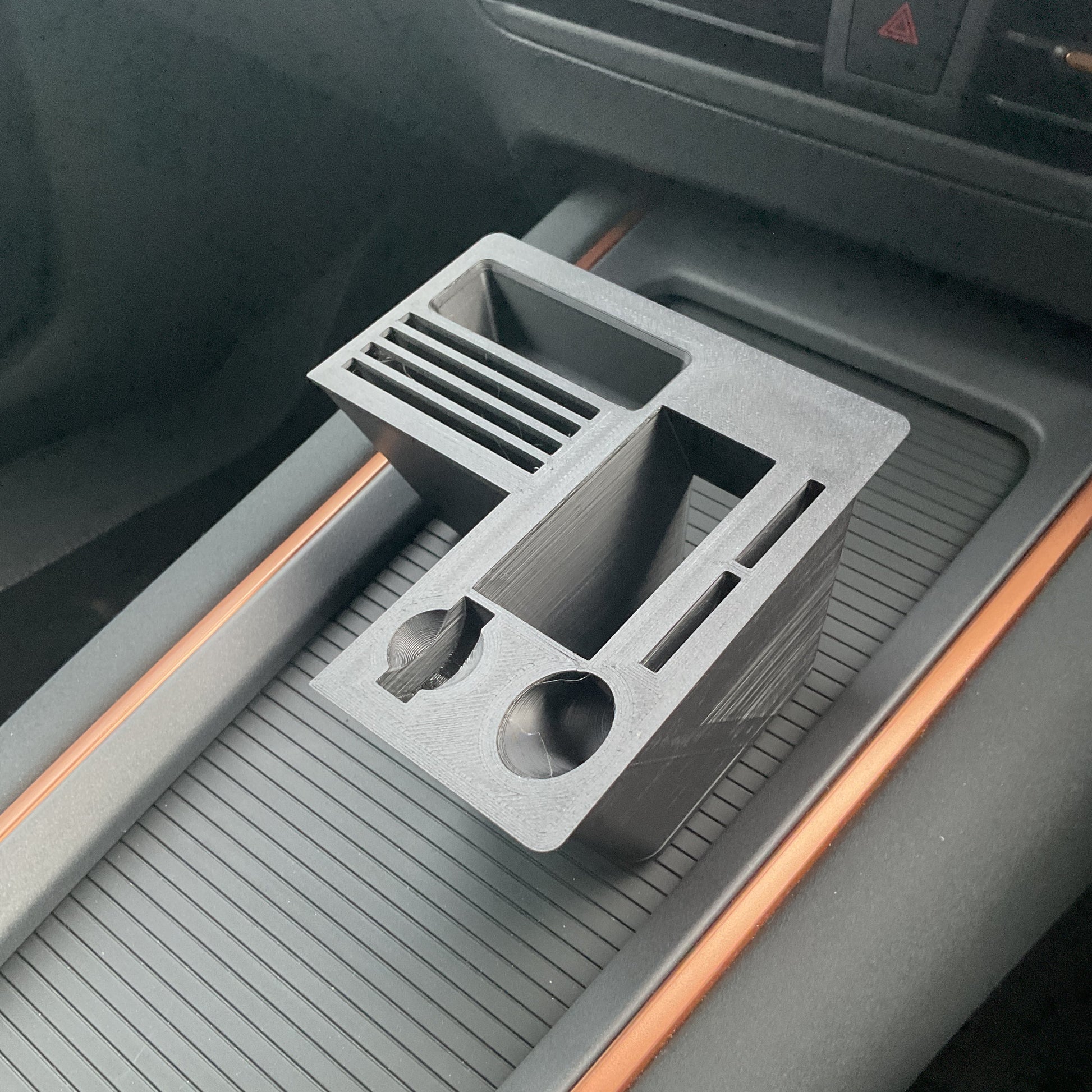 This is listing is for my Cupra Born Centre Console organiser. This item seamlessly fits into the existing area in the Cupra Born centre console. The fit is snug to ensure minimal movement of the item. Various items can be sorted in the item.